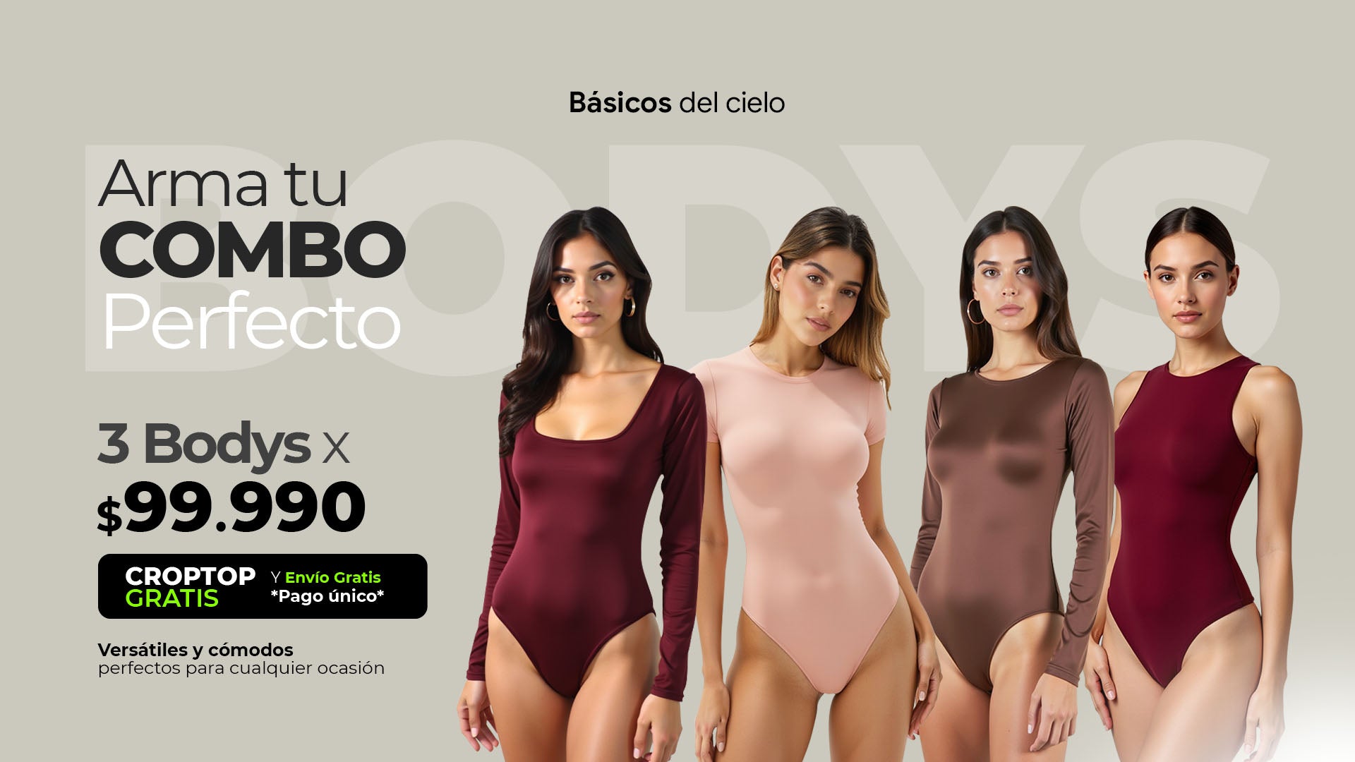 En Básicos del Cielo, creemos en la fuerza de los esenciales bien hechos. Diseñamos bodys y crop tops de calidad premium, con licra de doble capa para evitar transparencias y un ajuste perfecto que te acompaña en cada momento.Creamos prendas versátiles y cómodas, pensadas para mujeres que buscan estilo sin esfuerzo. Porque los mejores básicos no solo se ven bien, se sienten increíbles.