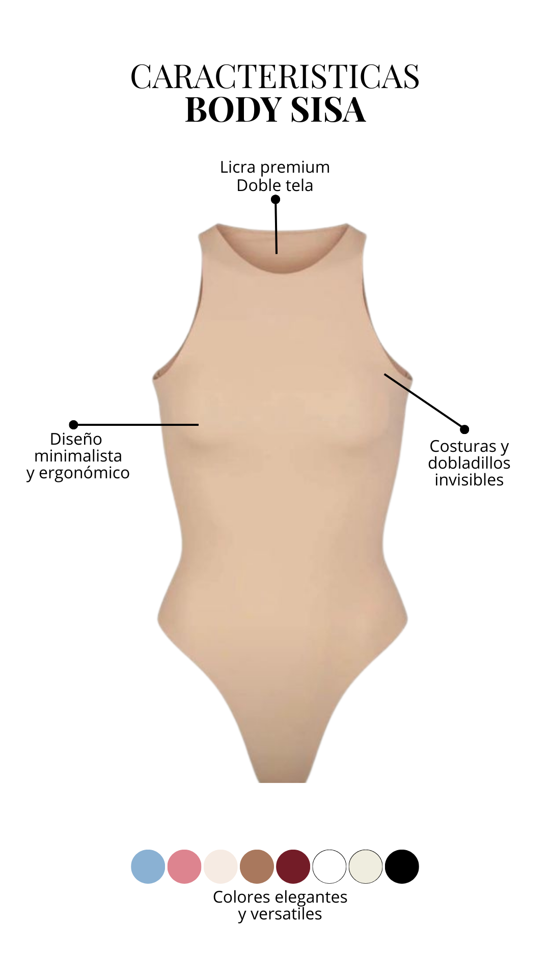 Nuestro body sisa Eternal está confeccionado en licra premium de doble capa (87% poliéster, 13% elastano) para un ajuste ceñido, sin transparencias y con acabado mate. Su diseño minimalista tipo halter modificado con escote alto y espalda cubierta resalta por líneas limpias y costuras invisibles. Incorpora broche de tres posiciones en la entrepierna, brindando comodidad y practicidad. Una prenda versátil, de apariencia pulida, que se siente como una segunda piel y funciona tanto en looks casuales como elegantes