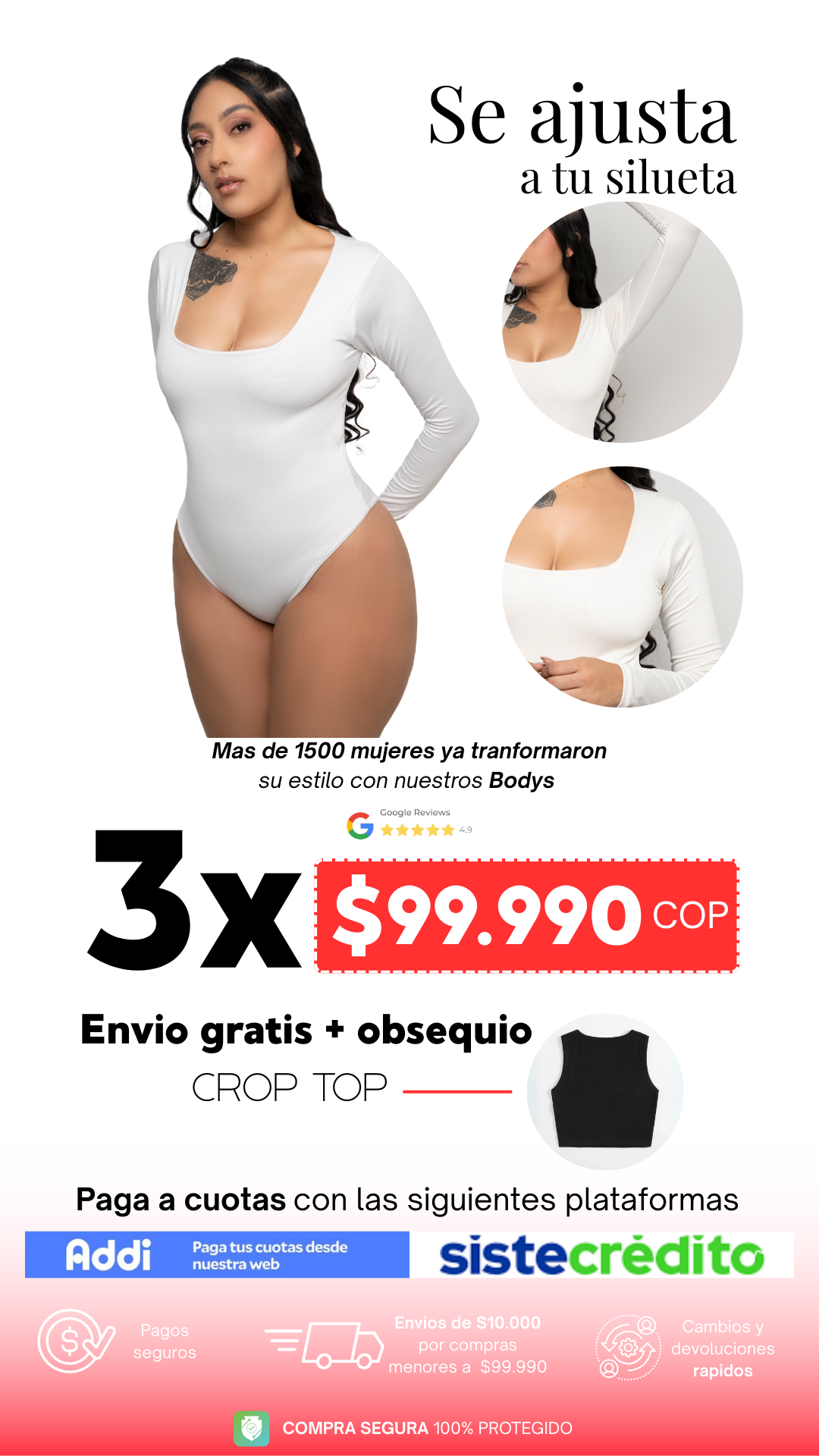 Arma tu combo de 3 Bodys por $99.990 más 1 Crop Top de regalo