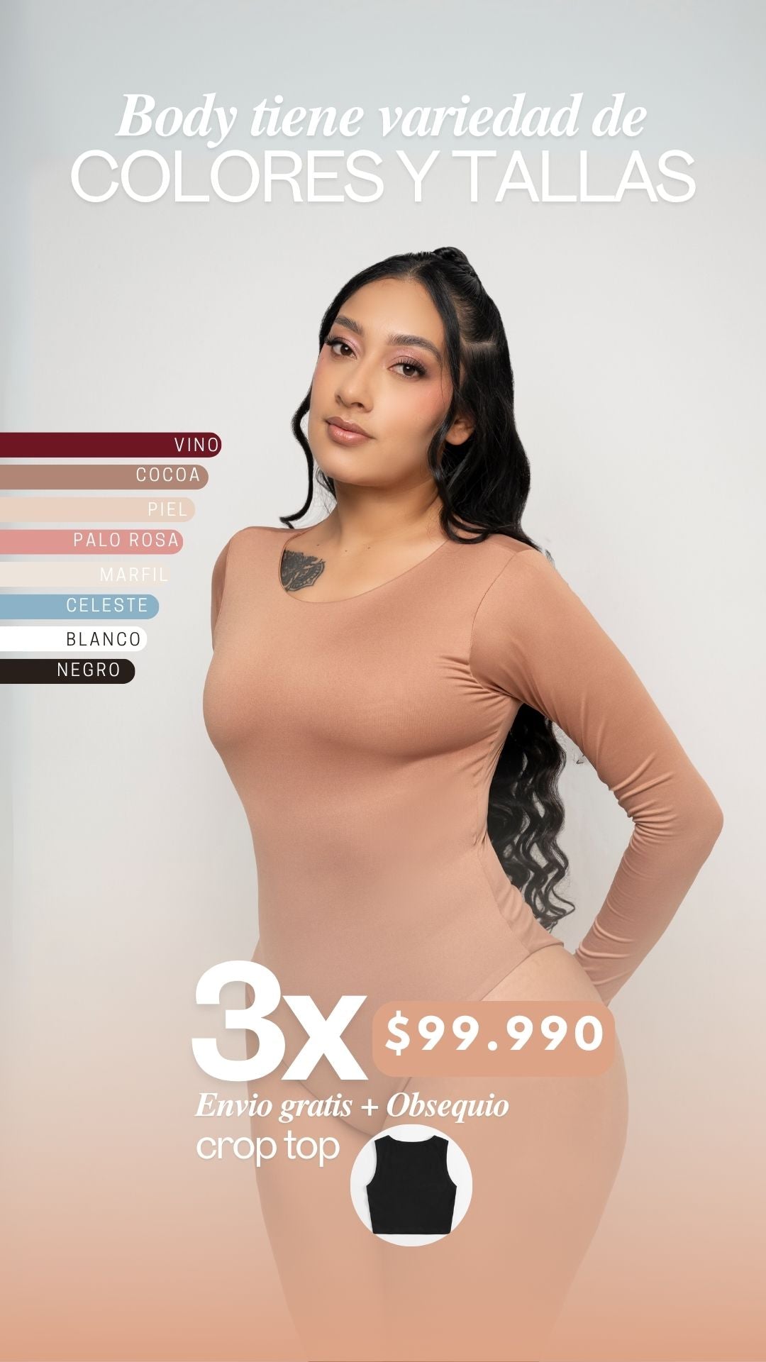 Arma tu combo de 3 Bodys por $99.990 más 1 Crop Top de regalo