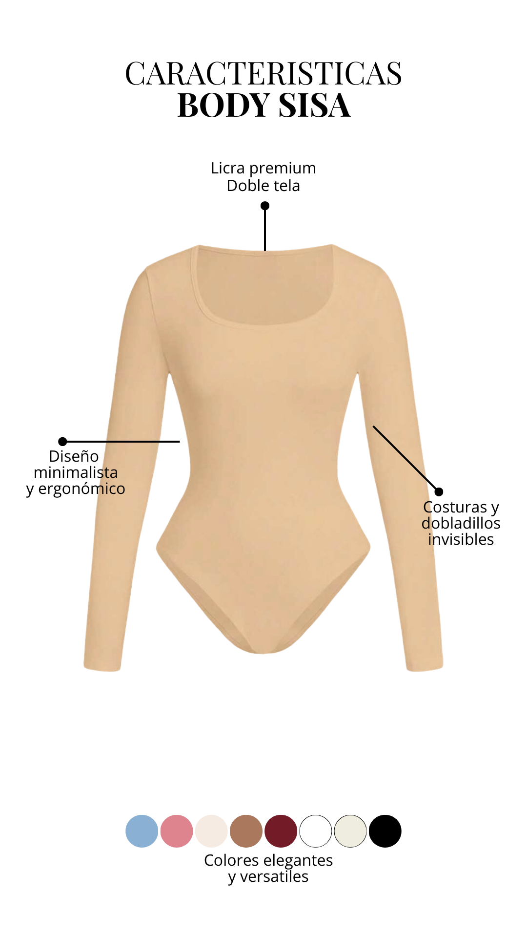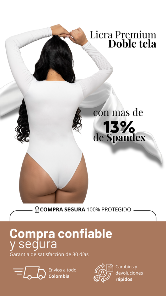 Nuestro Body Clasic cuello redondo manga larga, elaborado en licra premium (87% poliéster, 13% elastano) de alta calidad. Su diseño ajustado y cómodo incluye broche de 3 niveles en la entrepierna para mayor practicidad. Hecho en Colombia, perfecto para combinar en looks casuales o elegantes.
